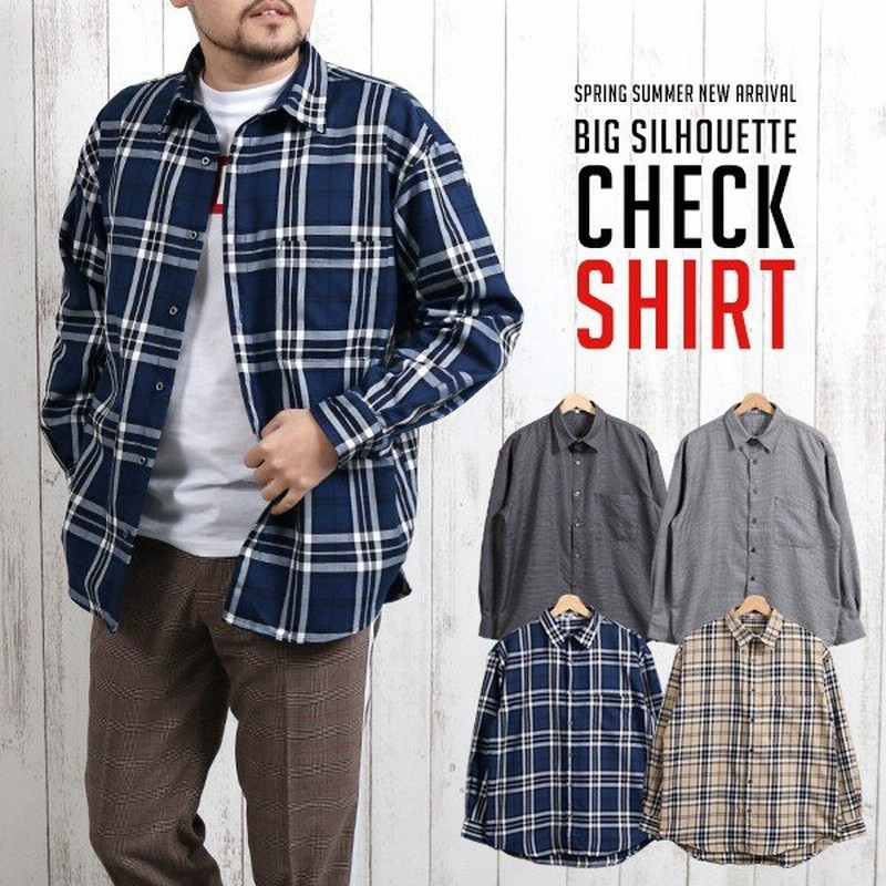 チェックシャツ メンズ 長袖 ビッグシルエット チェック グレンチェック ビッグ 大きめ ベージュ ネイビー ブラック ホワイト メール便のみ送料無料2 通販 Lineポイント最大0 5 Get Lineショッピング